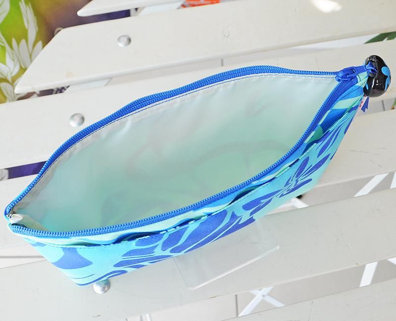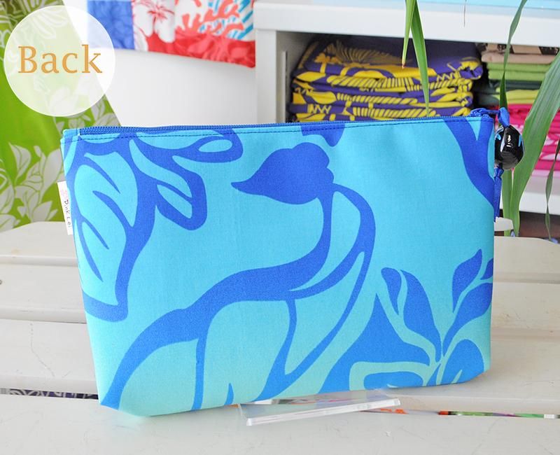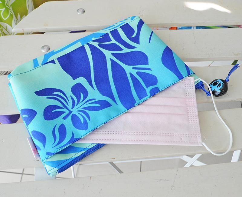 TOP > Pink Lei オリジナル【1点もの】ハワイアンマスクポーチ ブルーグラデーション・プルメリア&リーフ柄