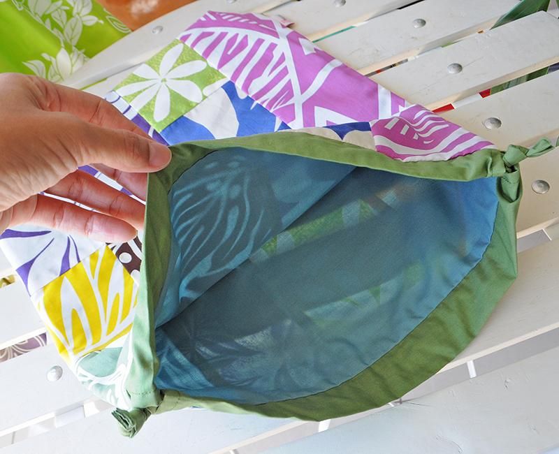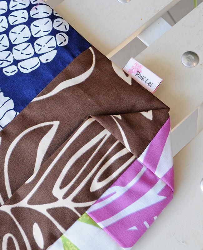 TOP > 〜新商品〜 Pink Lei オリジナル ハワイアンパッチ 巾着袋 マルチカラー/ティアレ&トロピカルリーフ【1点もの】