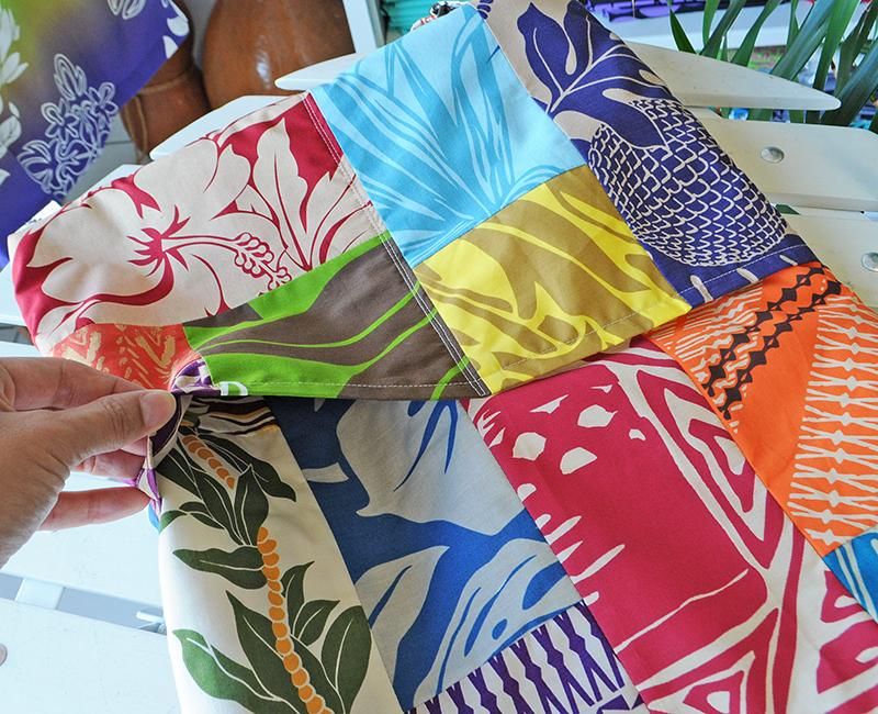 ハワイアンファブリックのパッチを一枚一枚丁寧に組み合わせ、色みを合わせて作られたバッグは世界に一つのオリジナルデザイン。