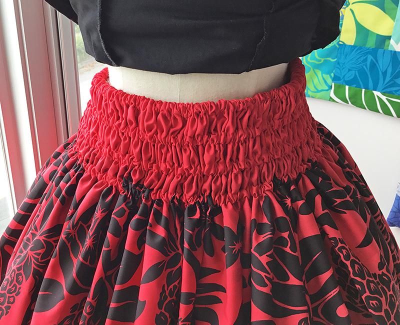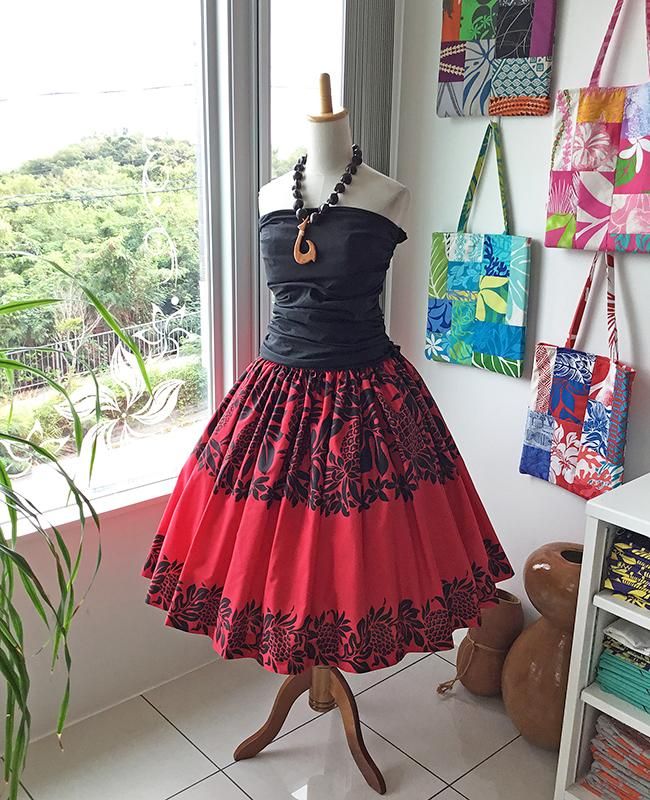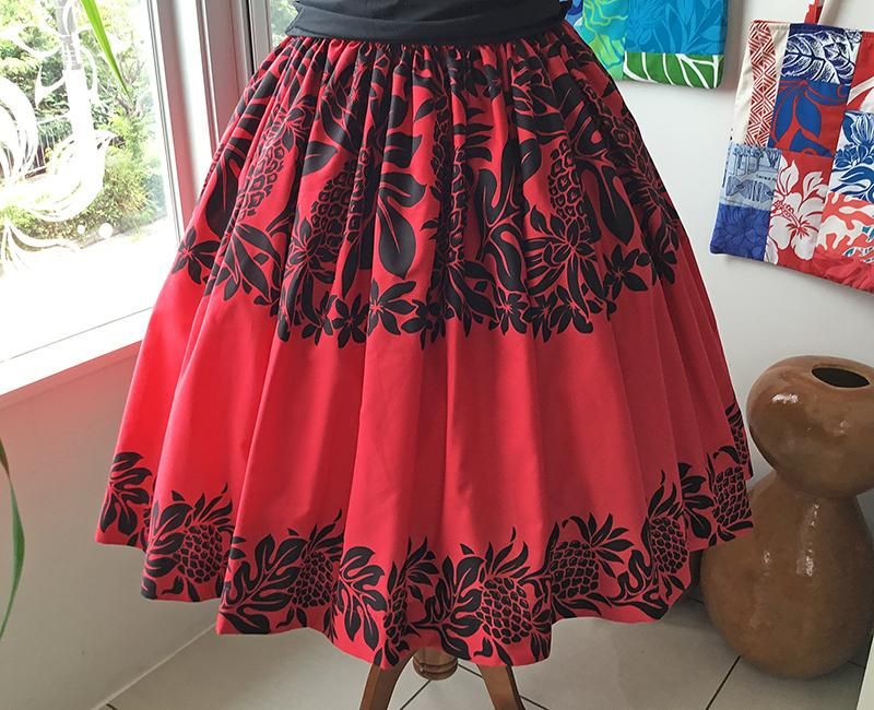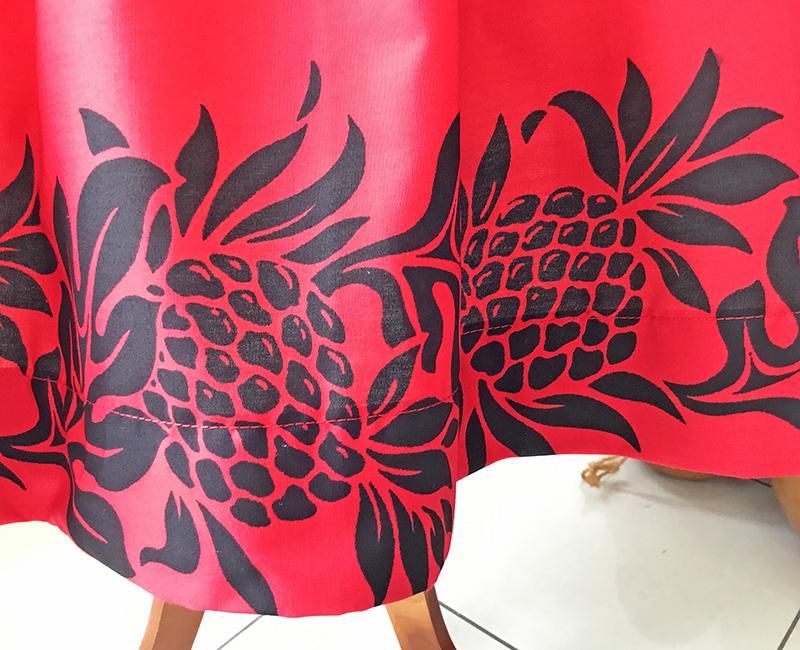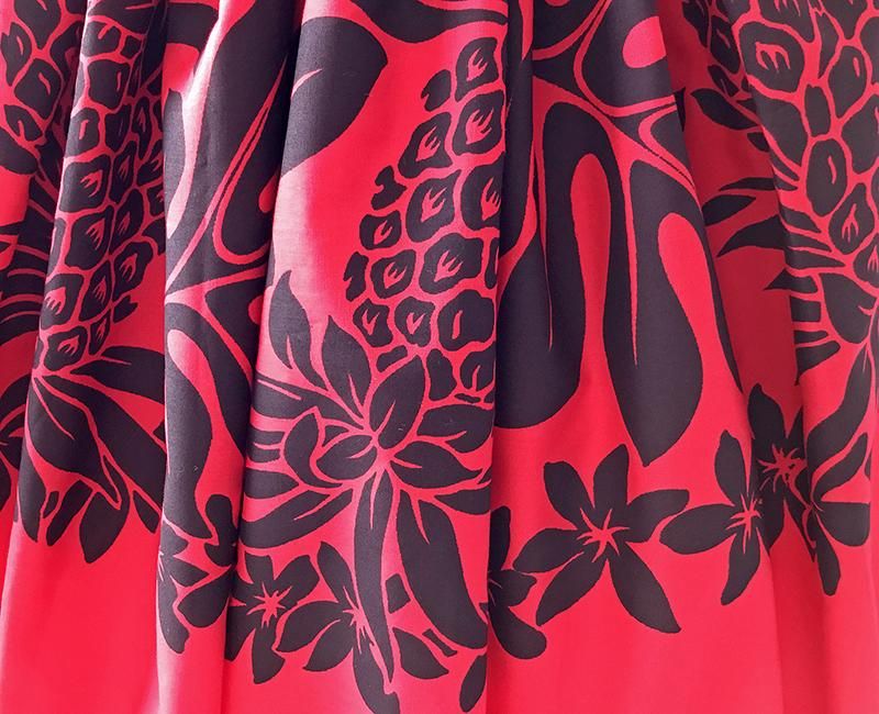 TOP > Pink Lei シングルパウ レッド&ブラック・パイナップル柄 ウエストゴム4本 丈73cm