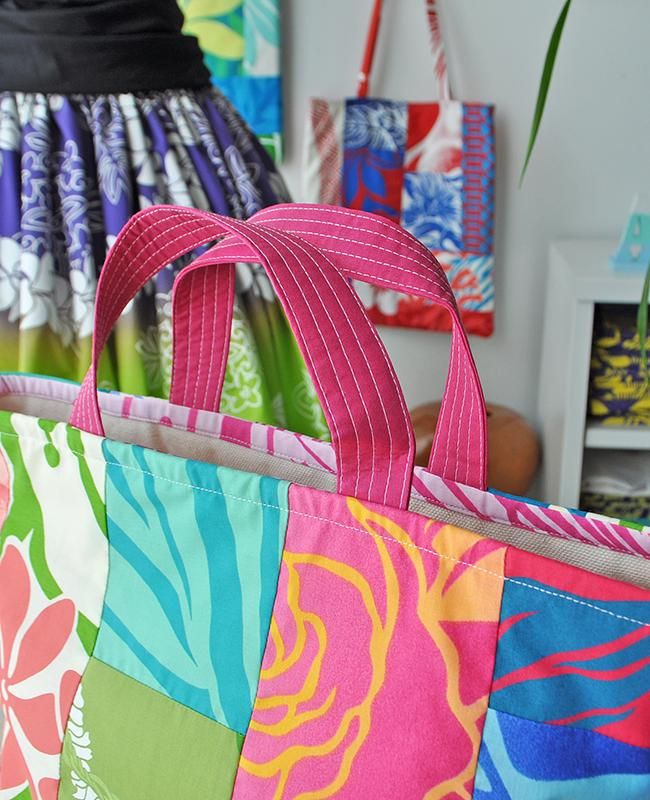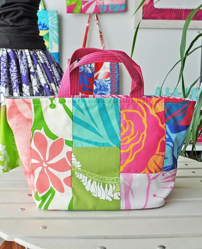 TOP > 〜新商品〜 Pink Lei【1点もの】ハワイアンパッチ・ひと回り大きいミニトートバッグM ピンク&ブルー&グリーン