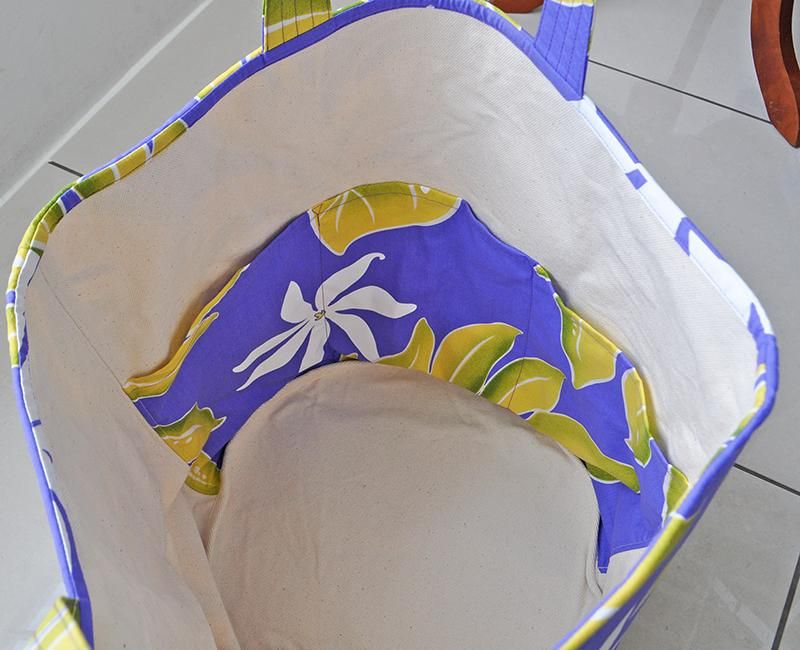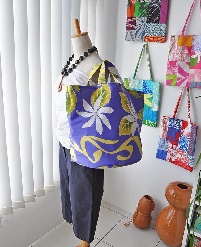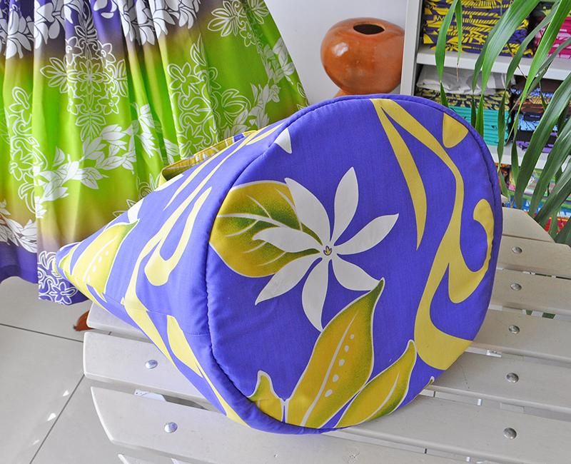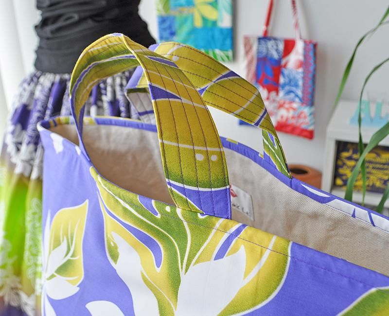 どのアングルから見ても飽きのこないキュートな形と、ハワイアンファブリック特有の華やかな柄が目を引くデザイン。