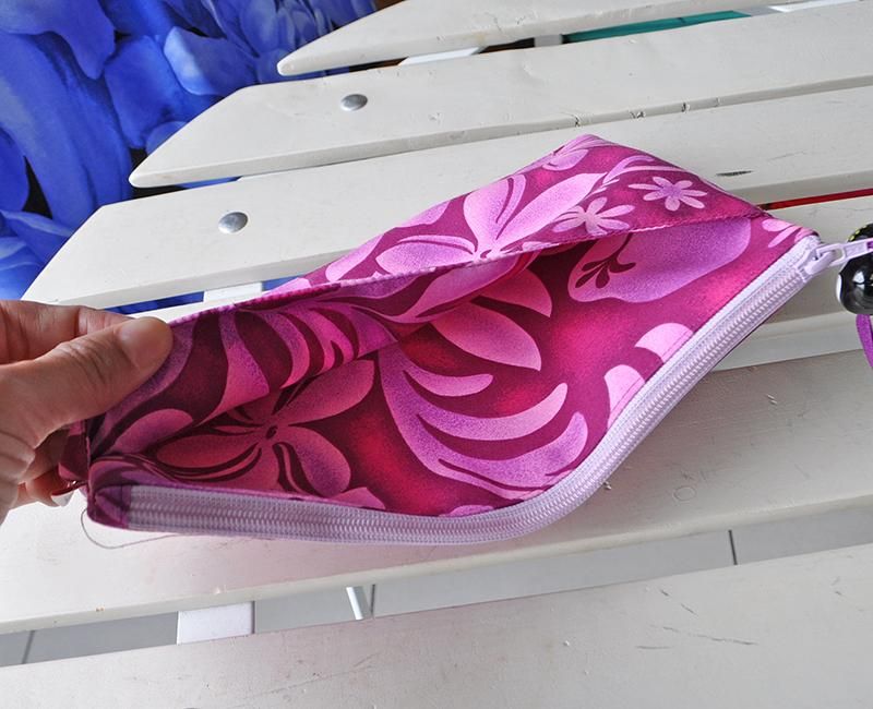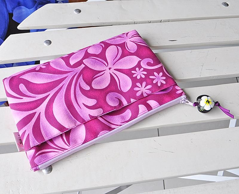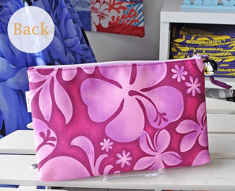 TOP > Pink Lei オリジナル【1点もの】ハワイアンマスクポーチ パープル&ピンク・プルメリア柄