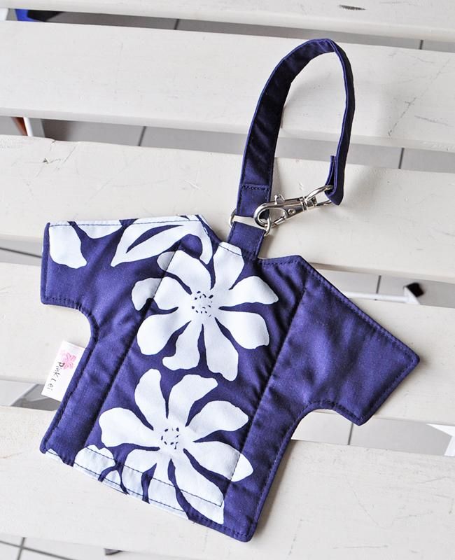 TOP > Pink Lei オリジナル【1点もの】ハワイアンラゲッジタグ Tahiti Imports/ネイビー&ホワイト・ティアレ柄
