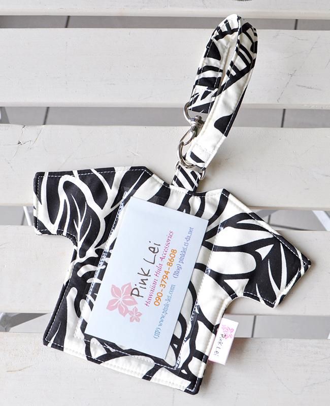 TOP > Pink Lei オリジナル【1点もの】ハワイアンラゲッジタグ ホワイト&ブラック・ティアレ柄