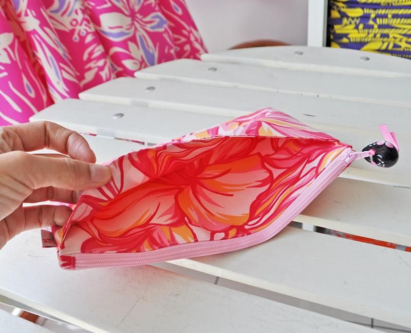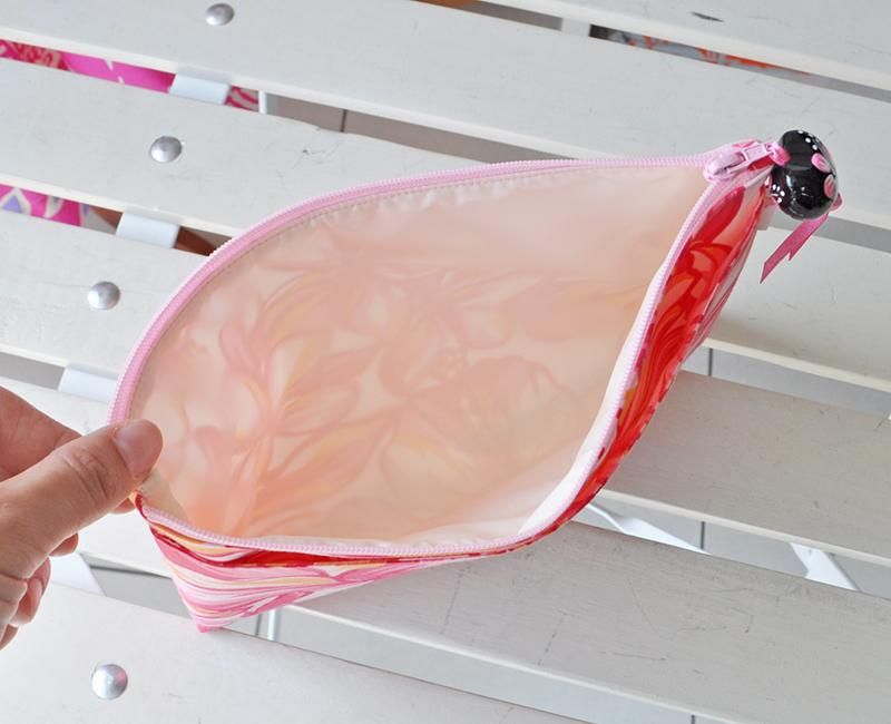 TOP > Pink Lei オリジナル【1点もの】ハワイアンマスクポーチ ピンク&イエロー・ハイビスカス&プルメリア柄
