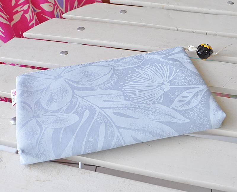 TOP > Pink Lei オリジナル【1点もの】ハワイアンマスクポーチ ストーングレー・レフア&リーフ&プルメリア柄