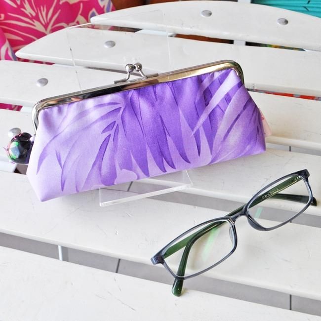 TOP > Pink Lei オリジナル【1点もの】 がま口・サングラスケース パープル・リーフ&ティアレ柄