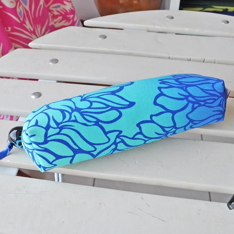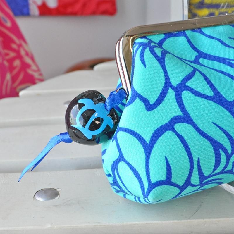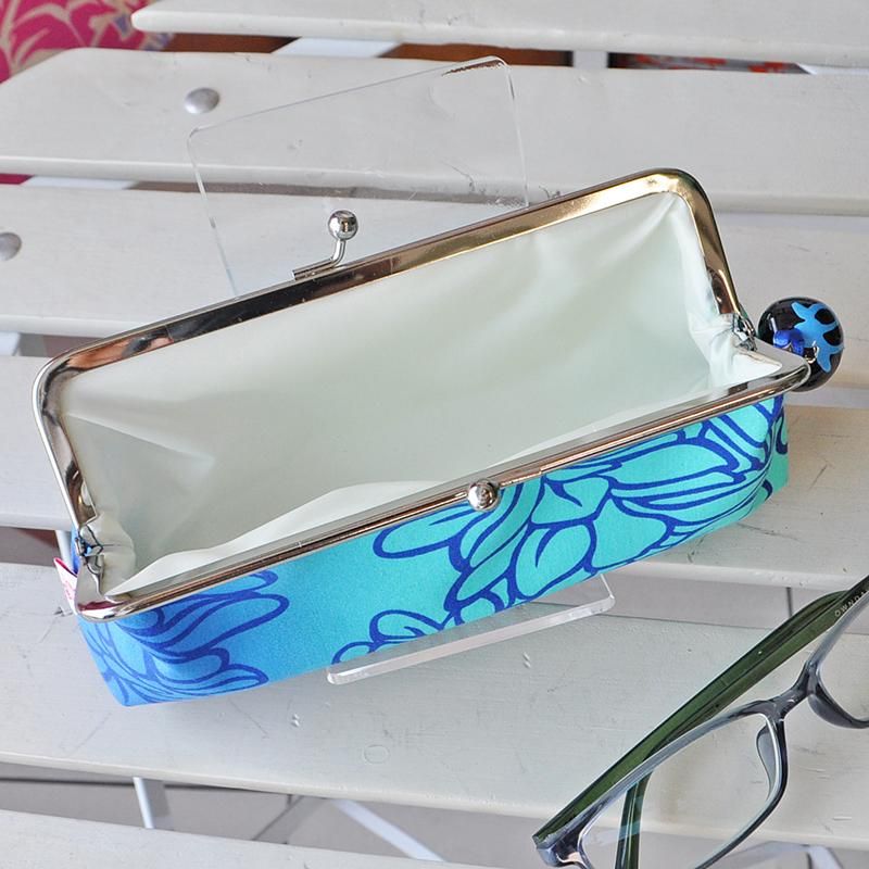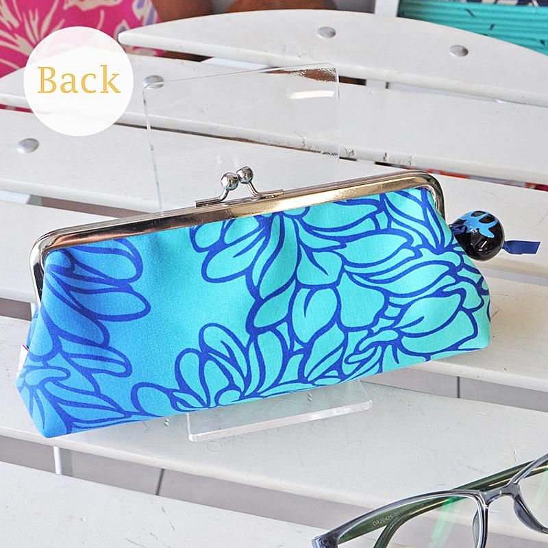 TOP > Pink Lei オリジナル【1点もの】 がま口・サングラスケース ターコイズブルーグラデーション・レイ柄