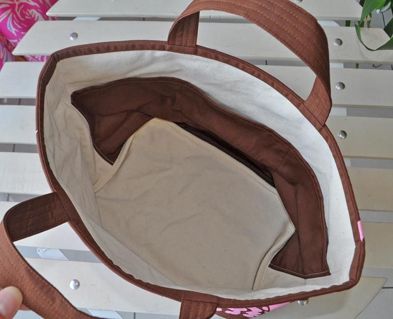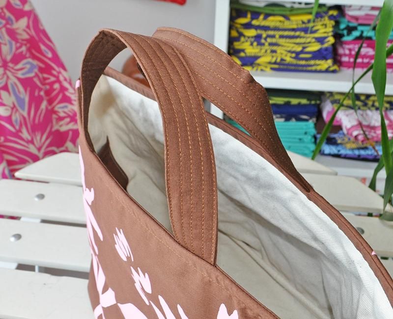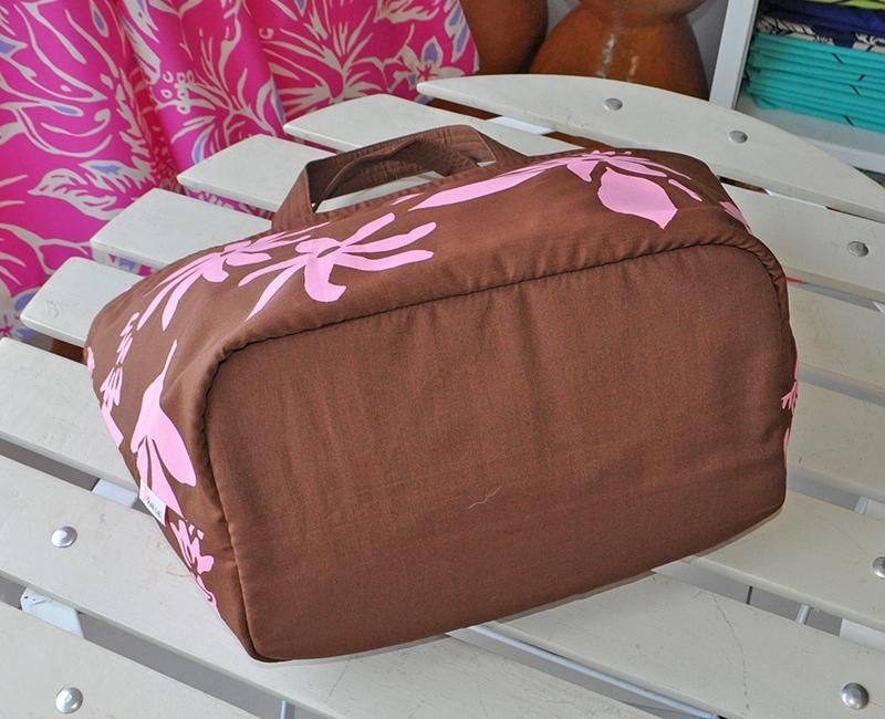 TOP > 〜新商品〜 Pink Lei【1点もの】ひと回り大きいミニトートバッグM Tahiti Imports/ブラウン&ピンク・ティアレ&レイ柄