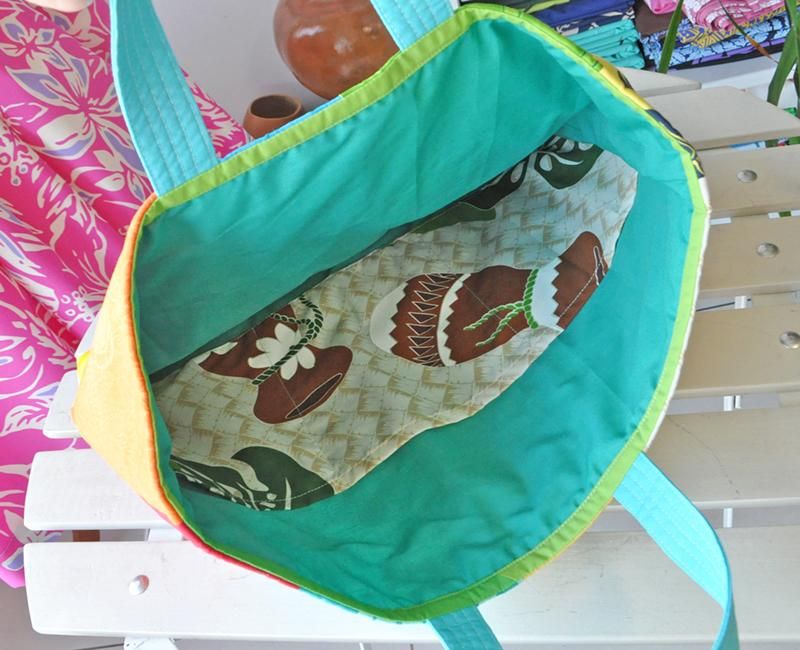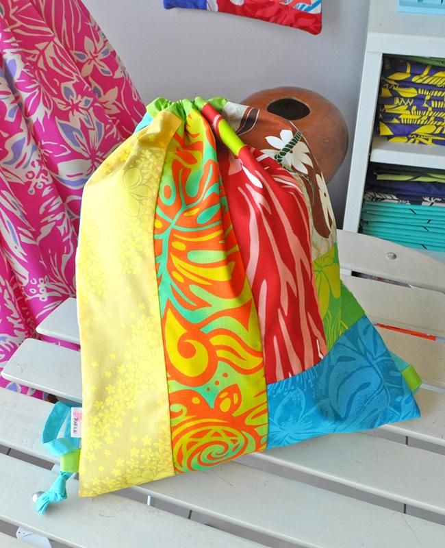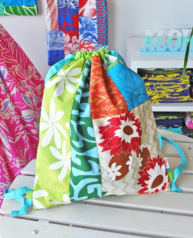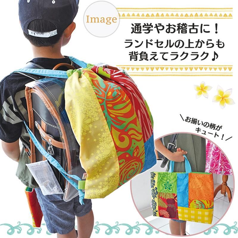 TOP > Pink Lei オリジナル【1点もの】〜新商品〜 お稽古バッグと巾着ナップサックセット(ハワイアンパッチ) ブルーマルチ