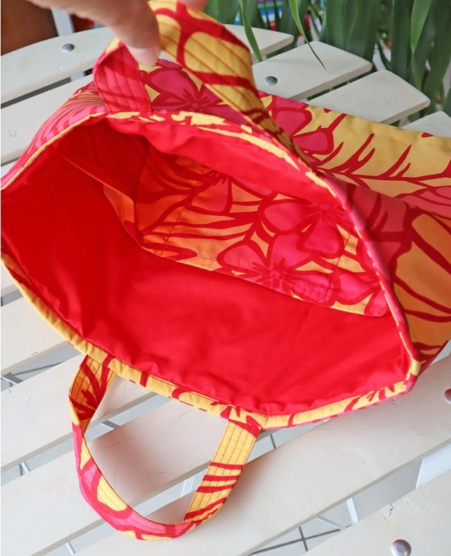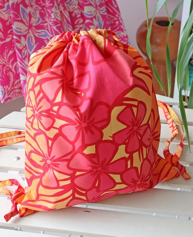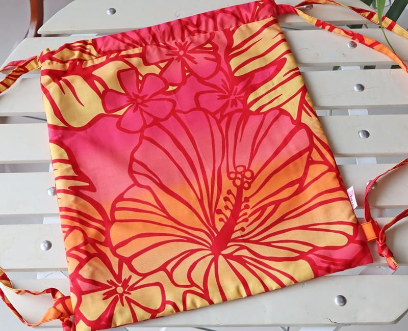 ハワイから直接仕入れたファブリックを使用した、お稽古バッグと巾着ナップサック(リュック)。
