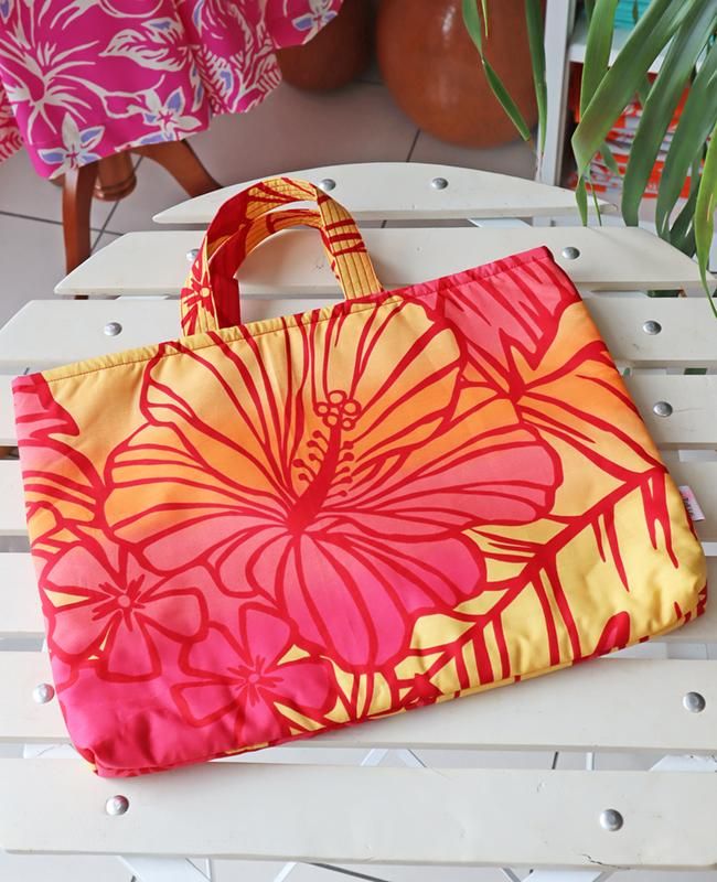 TOP > Pink Lei オリジナル【1点もの】〜新商品〜 お稽古バッグと巾着ナップサックセット イエロー&ホットピンクグラデーション/ハイビスカス柄