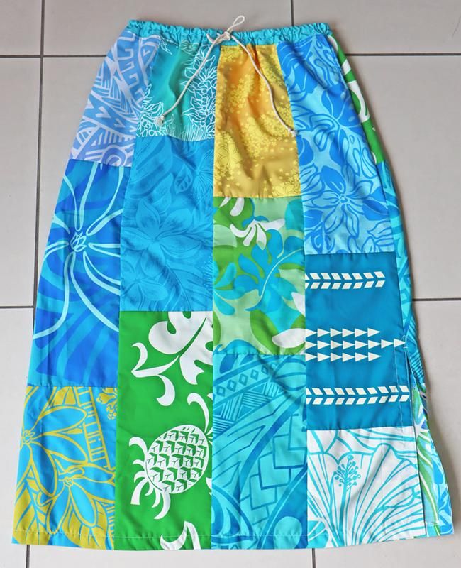 TOP > 【1点もの】 Pink Lei オリジナル/パッチドレス タイトロング ブルー&グリーン&イエロー【送料無料】