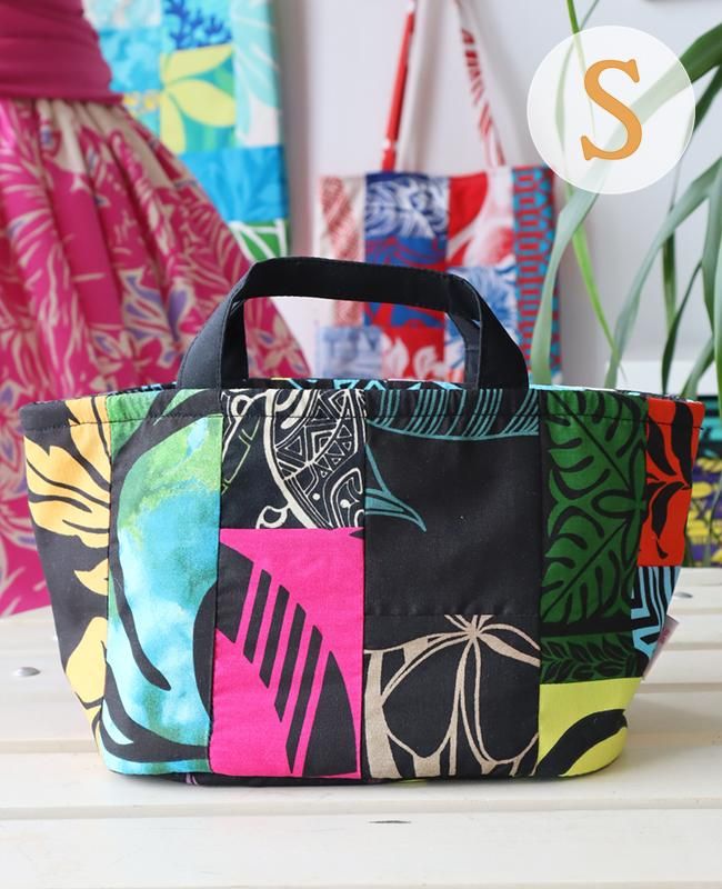 キルト作家さんとコラボして出来上がったオンリーワンのハワイアンパッチ・ミニトートバッグSです。
