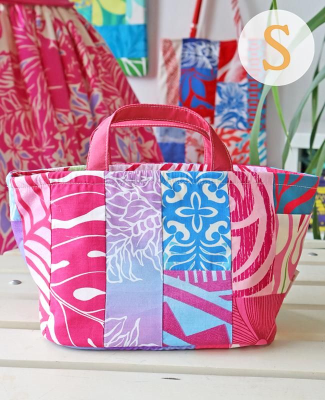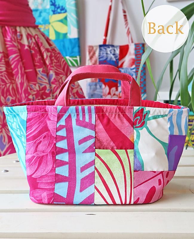 TOP > 〜新商品〜 Pink Lei【1点もの】ハワイアンパッチ・ミニトートバッグS ホットピンク&ブルー