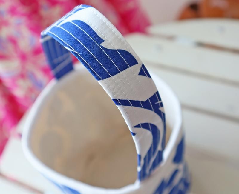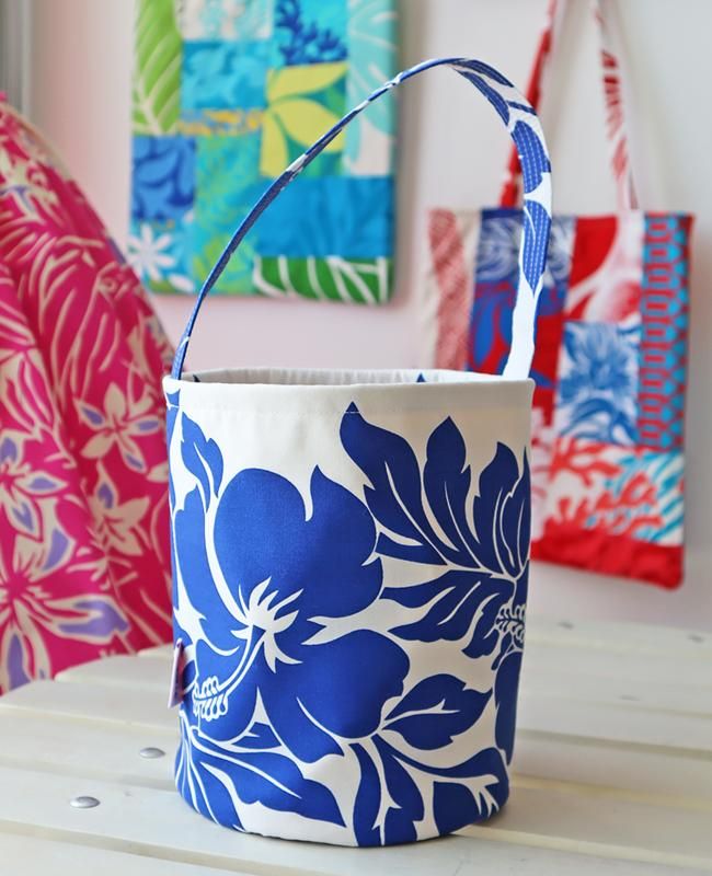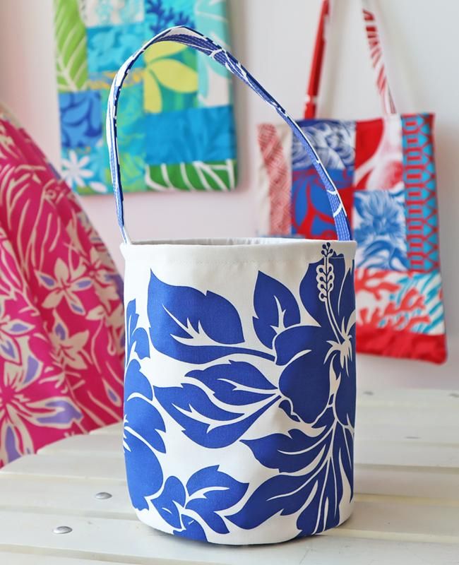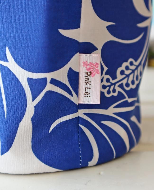 TOP > Pink Lei【新商品】バケツ型バッグ・(XS)  ホワイト&ブルー・ハイビスカス柄