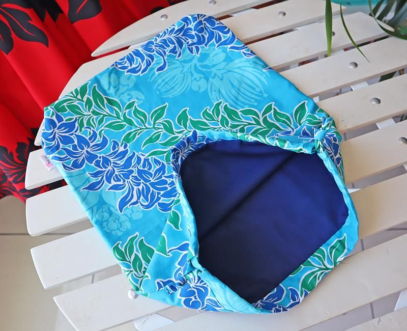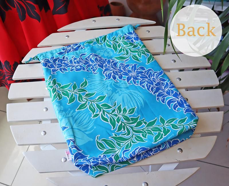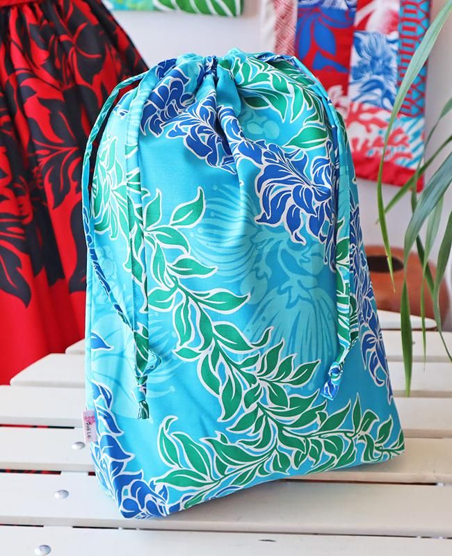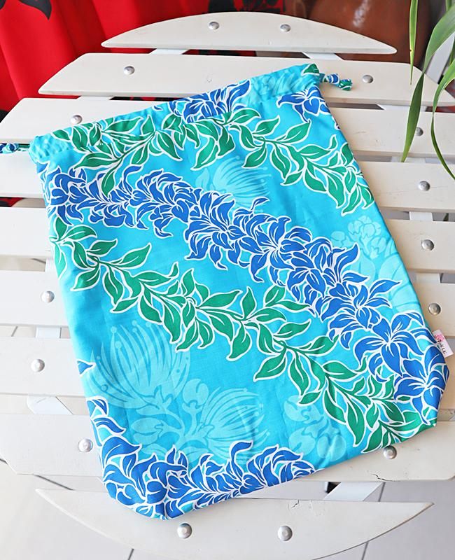 TOP > Pink Lei オリジナル 〜新商品〜 巾着袋 ブルー&グリーン/レイ&レフア柄【1点もの】