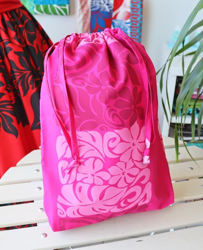 ハワイ直輸入のハワイアンファブリックで製作したハンドメイドの”巾着袋”です。
