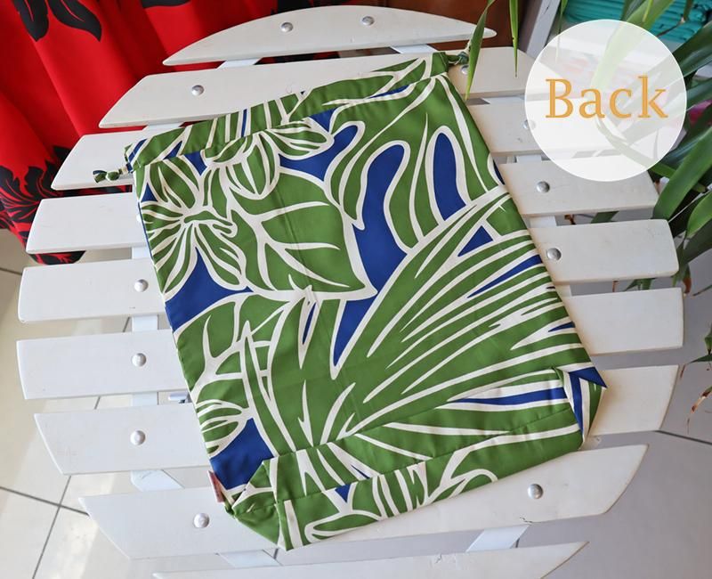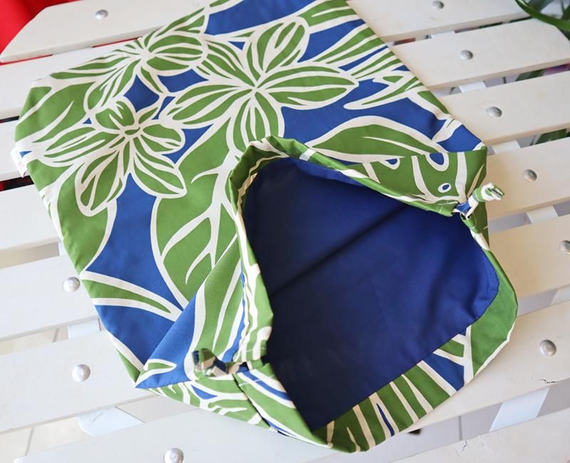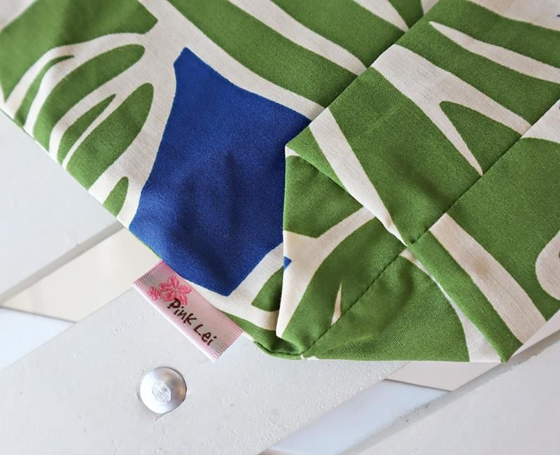 TOP > Pink Lei オリジナル 〜新商品〜 巾着袋 ブルー&グリーン/プルメリア&モンステラ柄【1点もの】