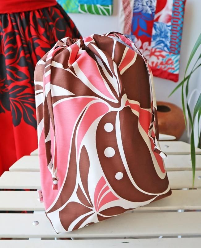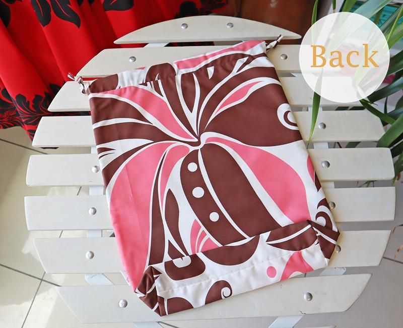 TOP > Pink Lei オリジナル 〜新商品〜 巾着袋 ホワイト&ピンク&ブラウン/プルメリア柄【1点もの】