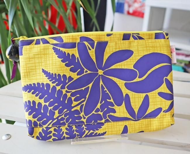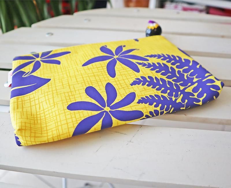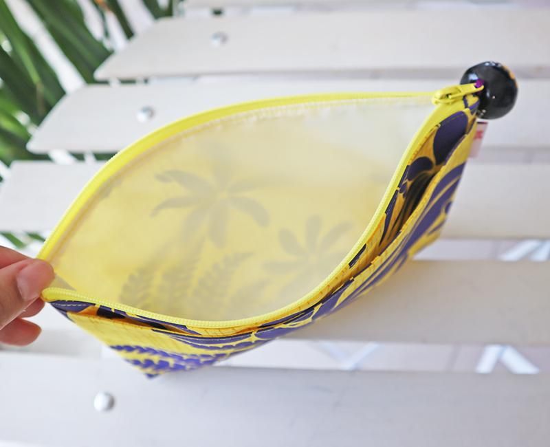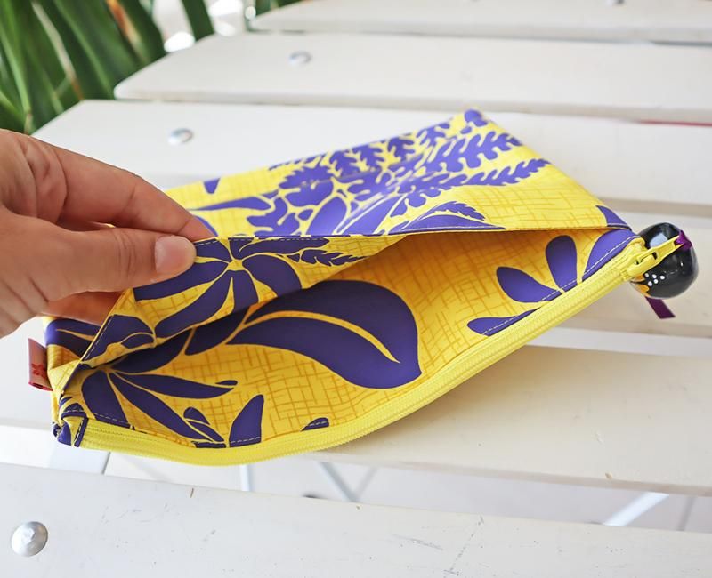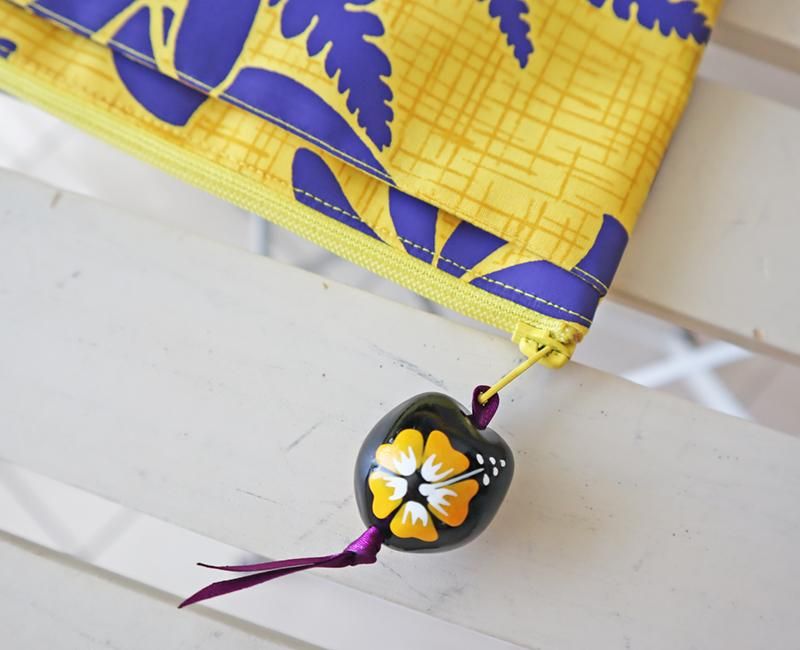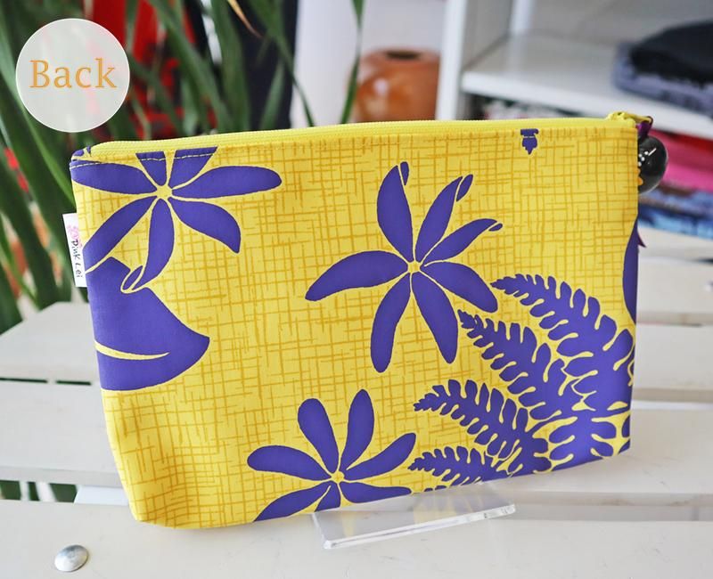 TOP > Pink Lei オリジナル【1点もの】ハワイアンマスクポーチ イエロー&パープル・ティアレ柄