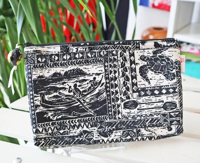ハワイワンファブリックで仕立てたキュートなデザインのポーチです。