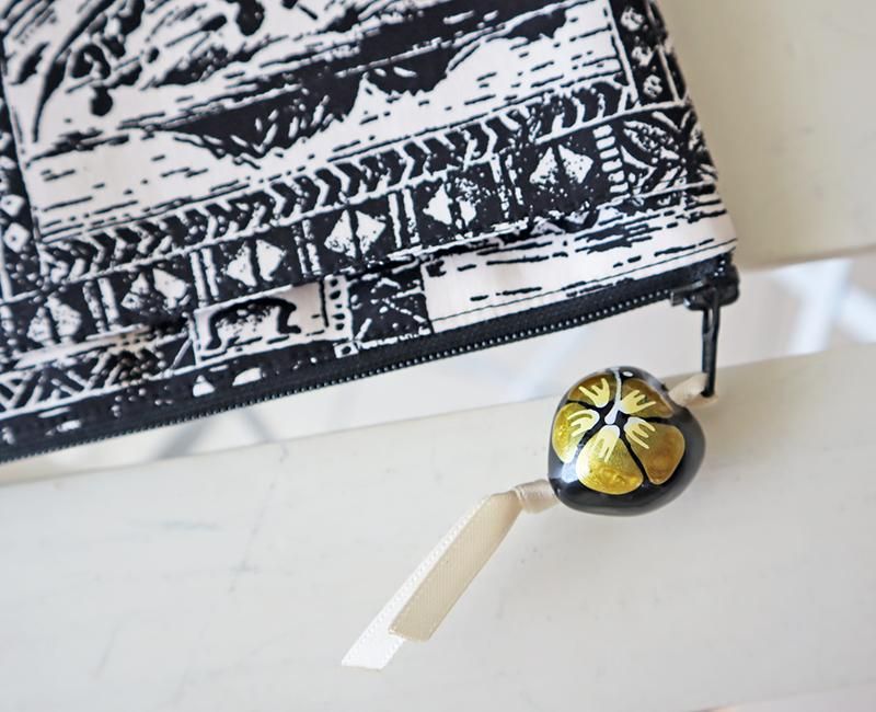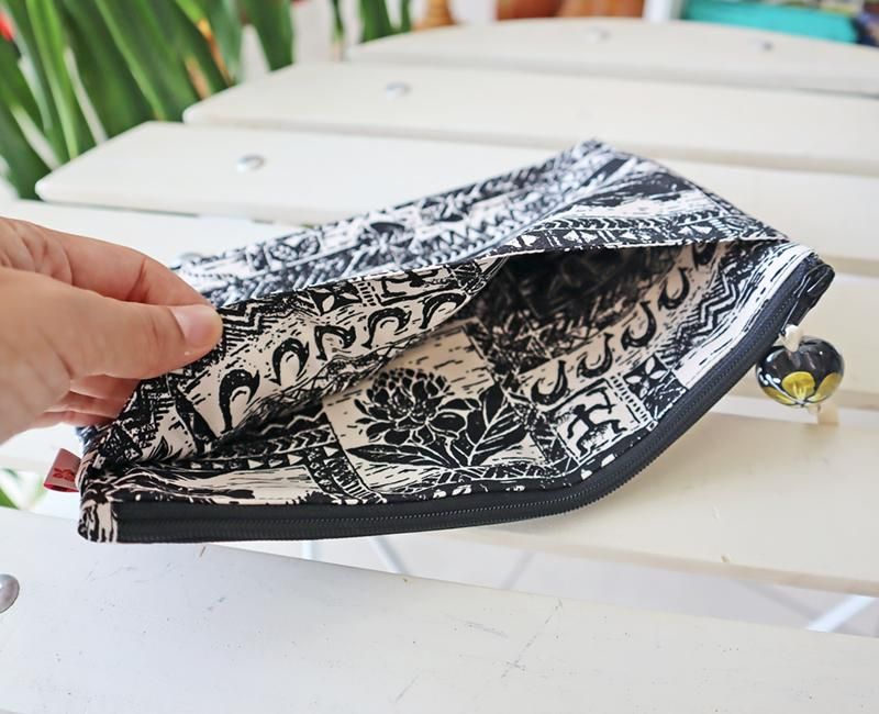 TOP > Pink Lei オリジナル【1点もの】ハワイアンマスクポーチ ブラック&ホワイト・ハワイアンモチーフ古典柄
