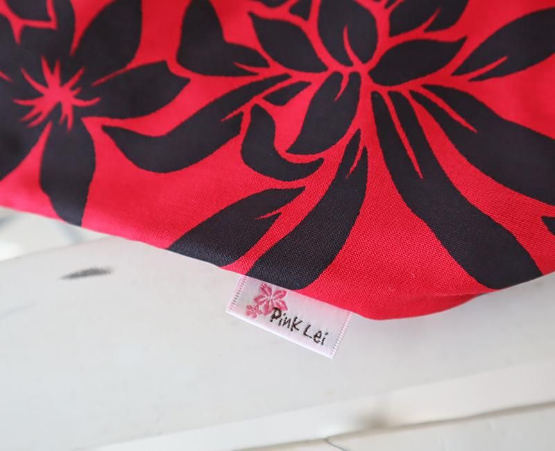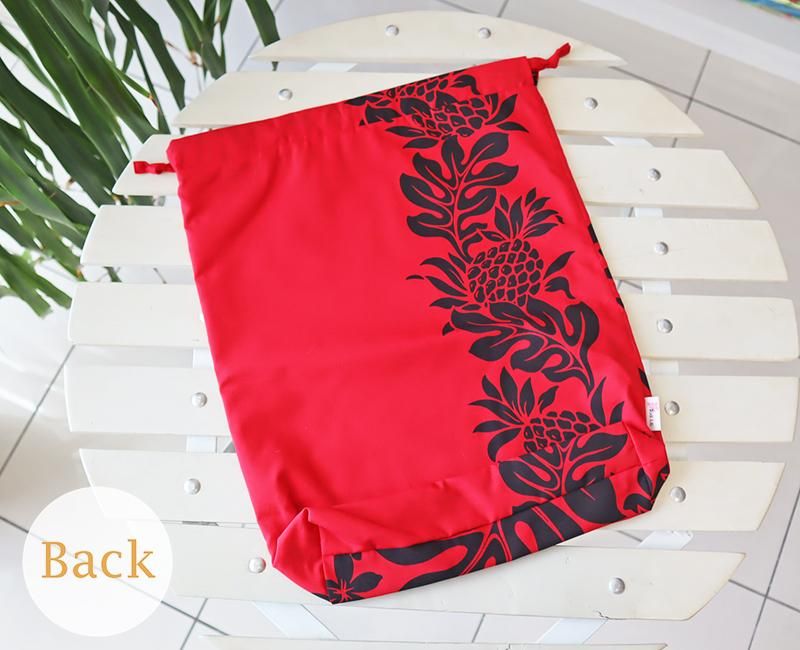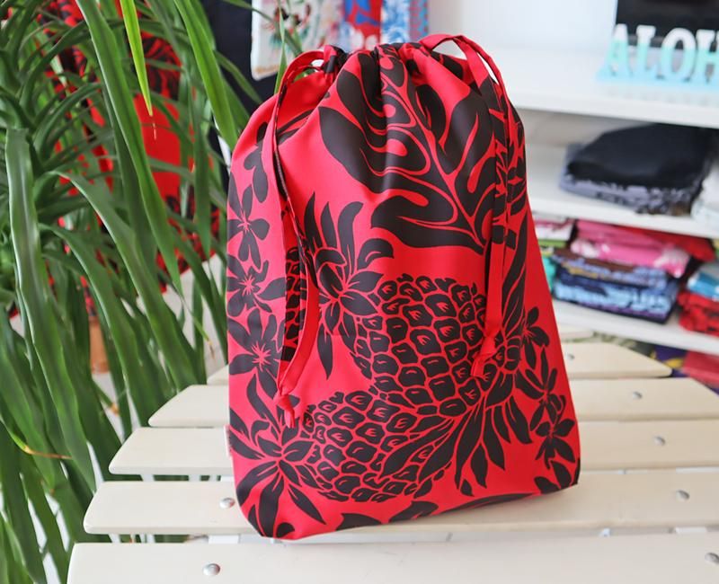 TOP > Pink Lei オリジナル 〜新商品〜 巾着袋 レッド&ブラック・パイナップル&リーフ柄【1点もの】