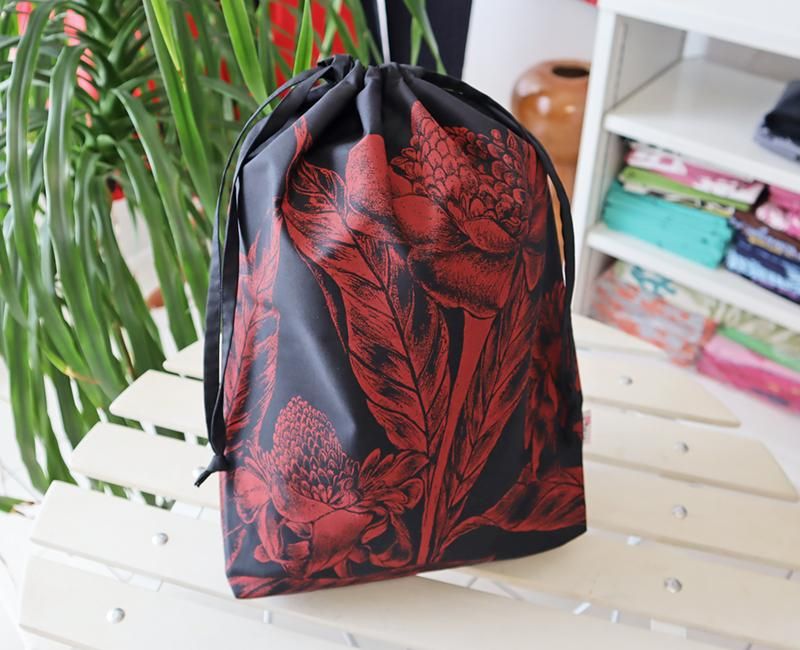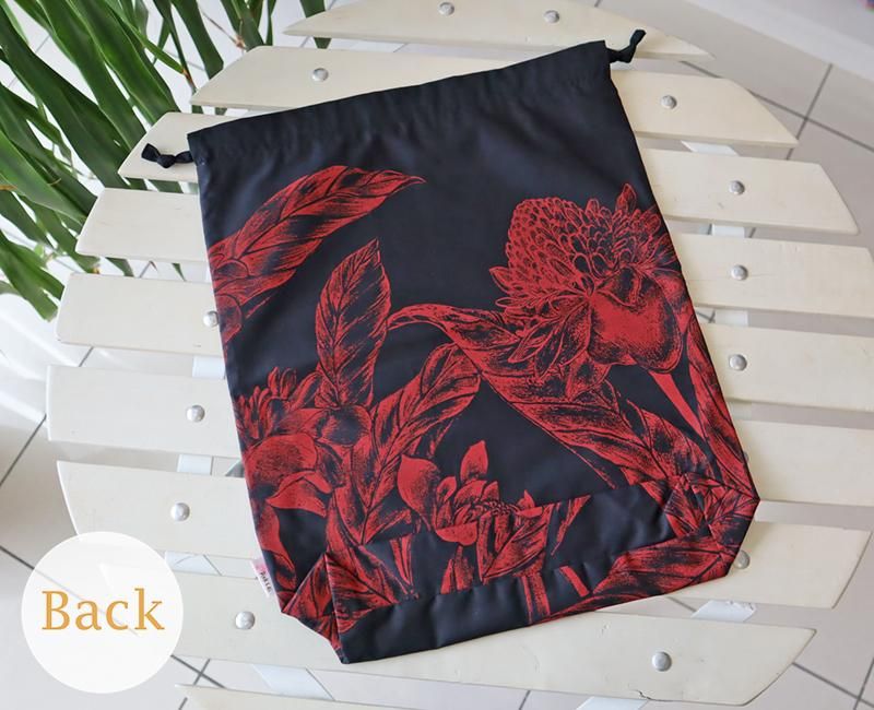 Pink Lei オリジナル 〜新商品〜 巾着袋 ブラック&レッド・トーチジンジャー柄【1点もの】