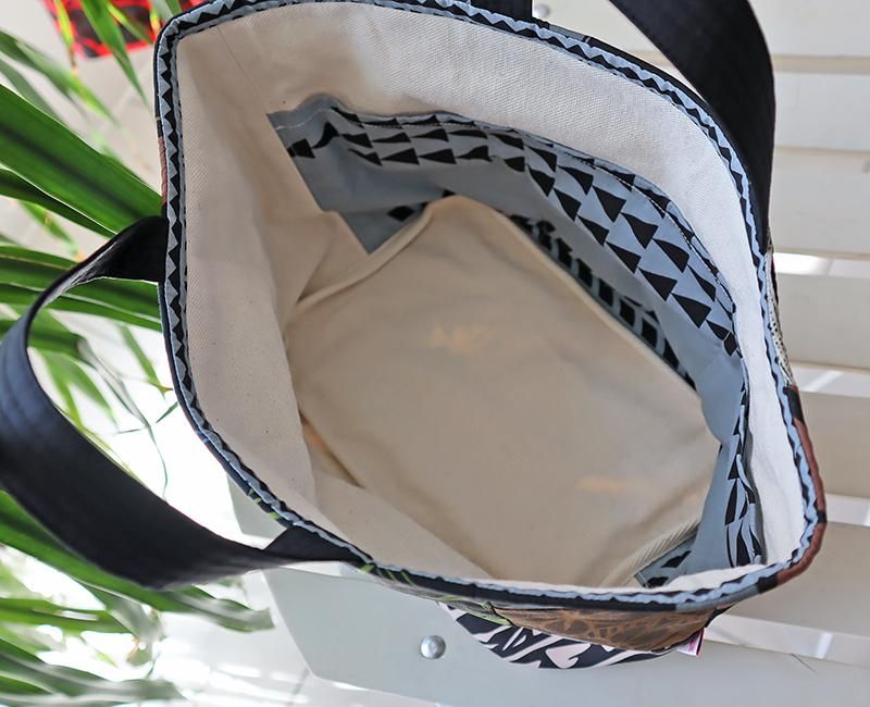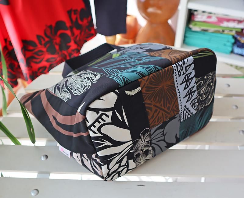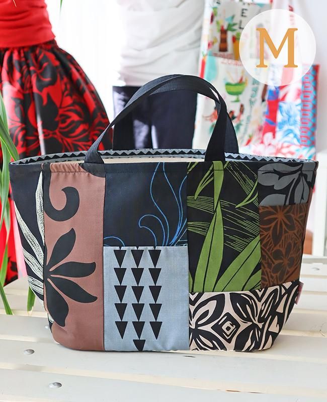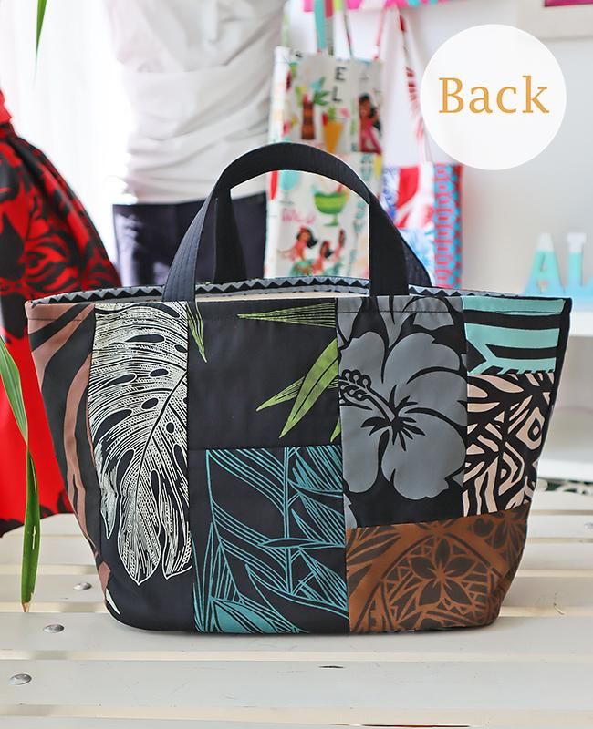 TOP > 〜新商品〜 Pink Lei【1点もの】ハワイアンパッチ・ひと回り大きいミニトートバッグM ブラックマルチ