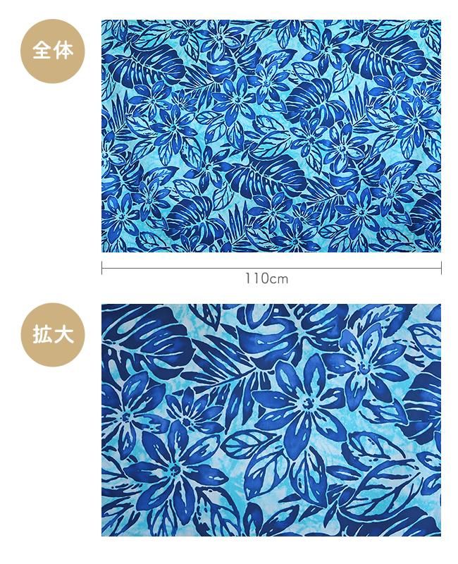 ハワイアンファブリック ティアレ&モンステラ総柄 シアンブルー