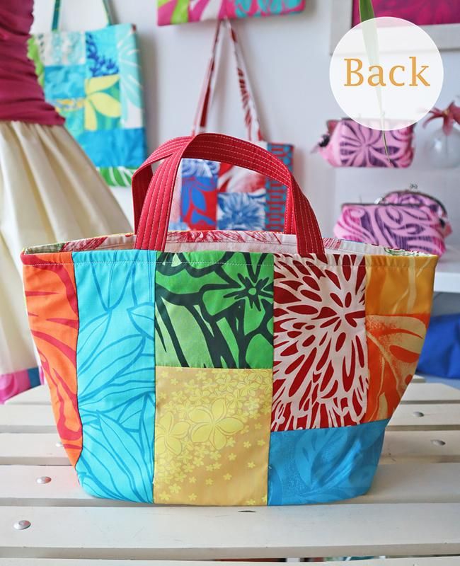 TOP > 〜新商品〜 Pink Lei【1点もの】ハワイアンパッチ・ひと回り大きいミニトートバッグM マルチ・フラワー柄