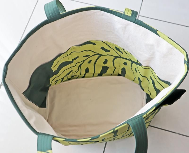 TOP > Pink Lei オリジナル【1点もの】タヒチインポーツ デイリートートバッグ ダークグリーン&モスグリーン・モンステラ柄