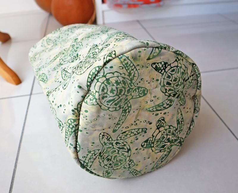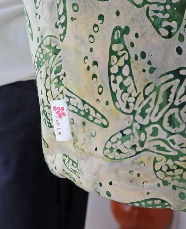 どのアングルから見ても飽きのこないキュートな形と、ハワイアンファブリック特有の華やかな柄が目を引くデザイン。