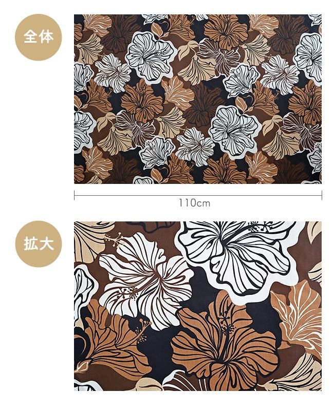 ハワイアンファブリック ハイビスカス総柄 ホワイト&ブラウン&ベージュ