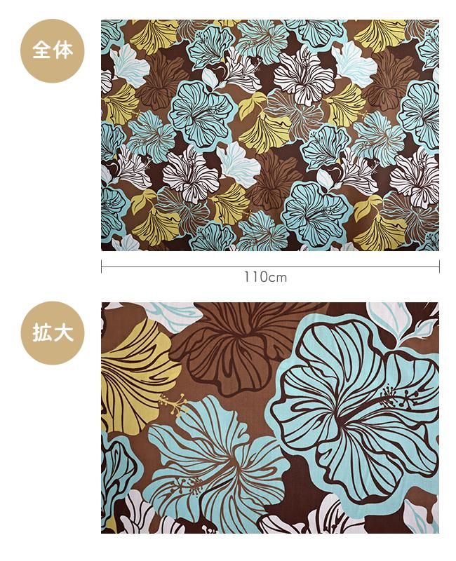 ハワイアンファブリック ハイビスカス総柄 ブラウン&ブルー&イエロー&ホワイト