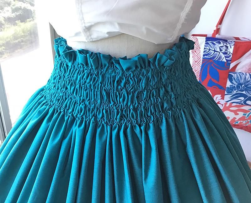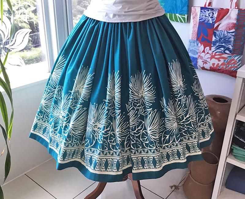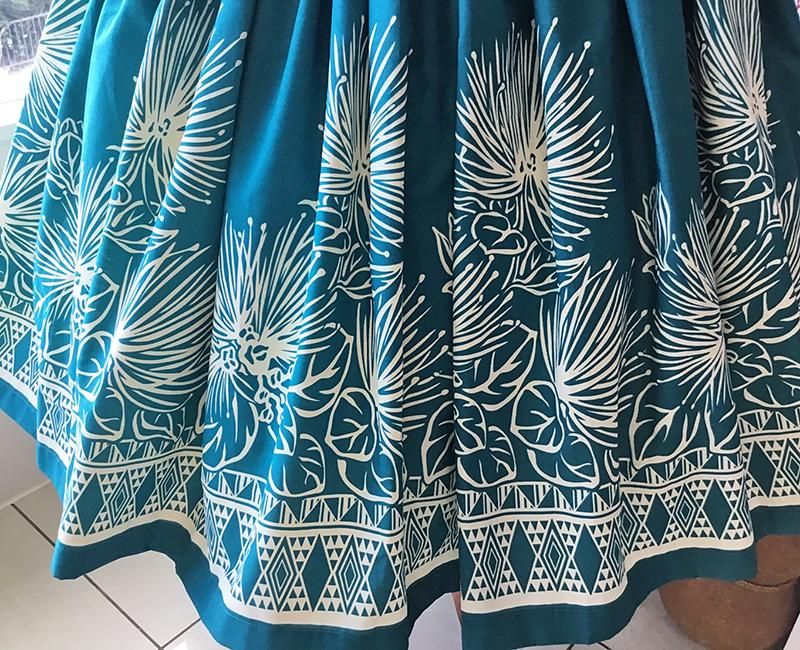TOP > 【一点もの】Pink Lei シングルパウ ティール&オフホワイト・レフア柄 ウエストゴム4本 丈73cm【既製品】