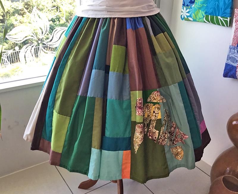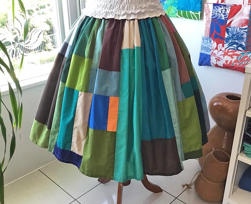 どのアングルから見ても飽きのこない、フラのお稽古が楽しくなるスカートです。