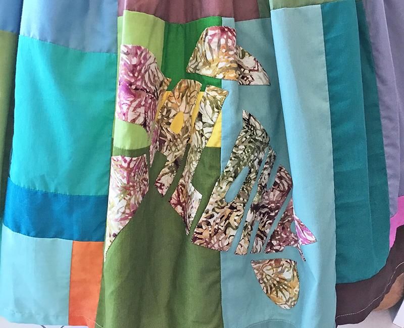 TOP > 【1点もの】Pink Lei オリジナル・パッチパウスカート ミックスグリーン・アップリケ(ALOHA/ホヌ)付き【送料無料】