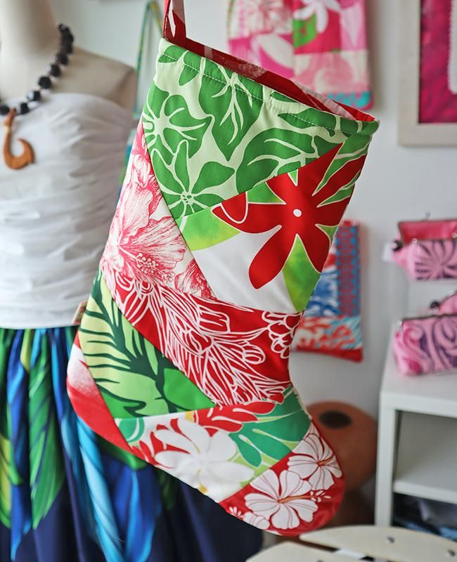 TOP > 〜新商品〜【1点もの】Pink Lei オリジナル/ハワイアンパッチ クリスマスストッキング レッド&グリーン #2