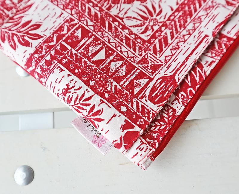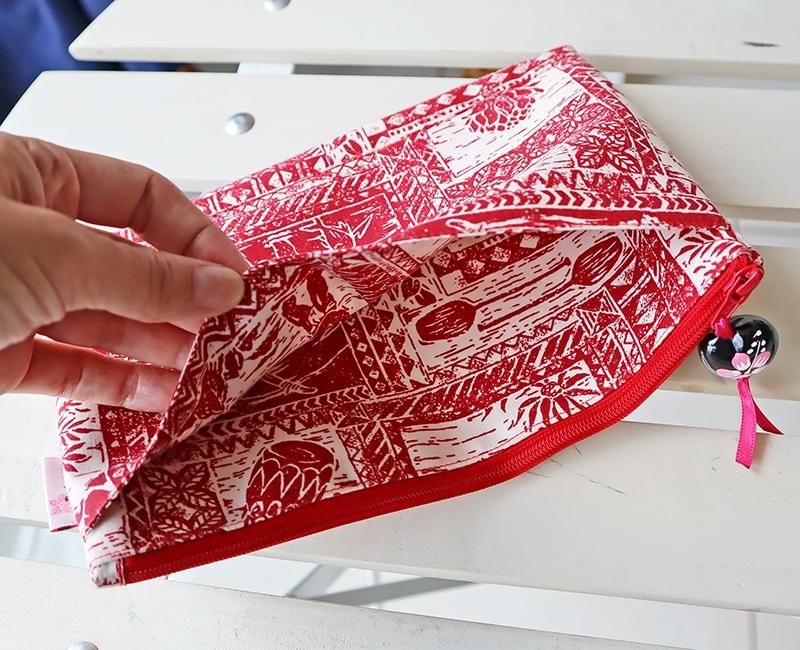 TOP > Pink Lei オリジナル【1点もの】ハワイアンマスクポーチ レッド&ホワイト・ハワイアンモチーフ柄