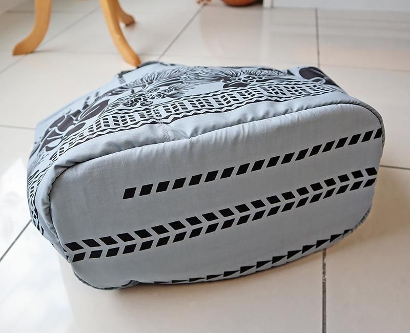 ハワイアンファブリック特有の華やかな柄が目を引くシンプルな作りながら、使いやすさ重視のこだわりをたくさん詰め込んだデザイン。