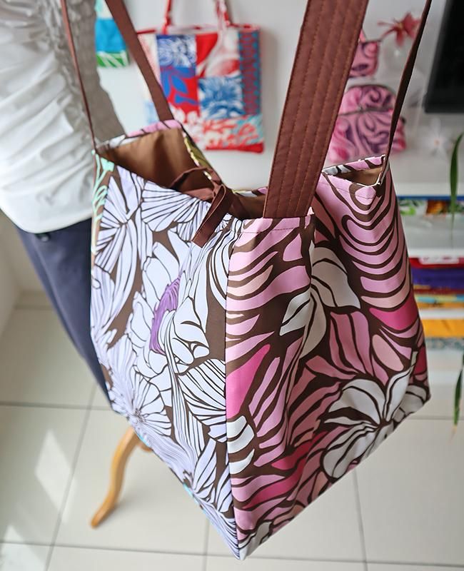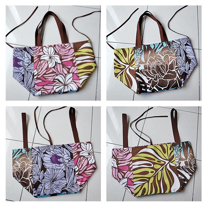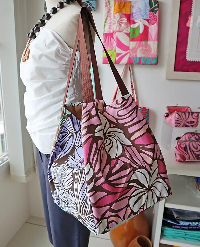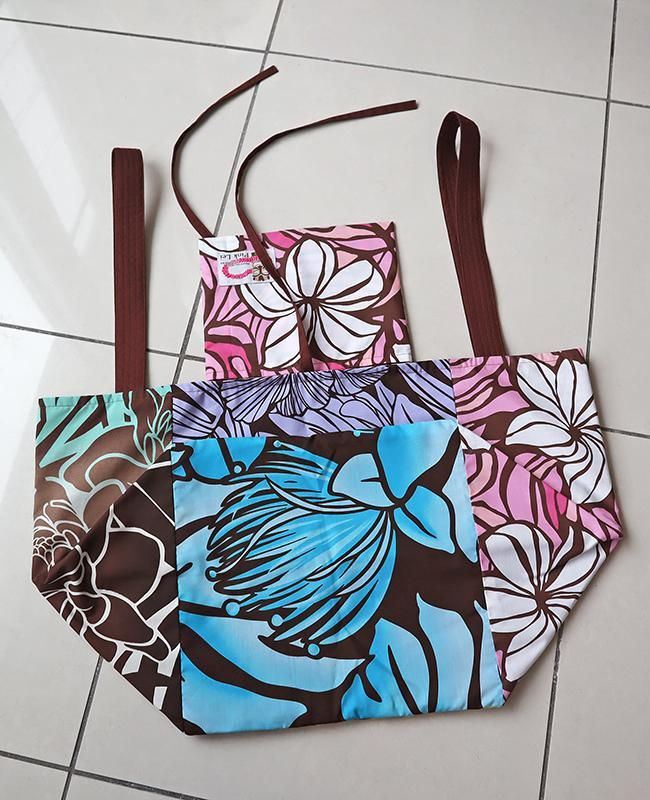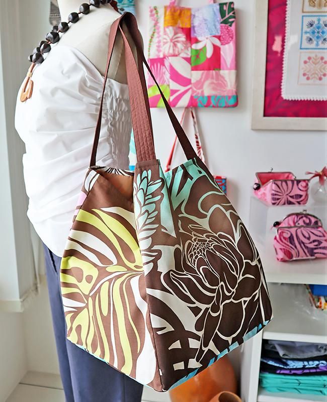 TOP > 〜新商品〜 Pink Lei オリジナル【1点もの】エコトートバッグ ブラウンマルチ・リーフ&フラワー柄