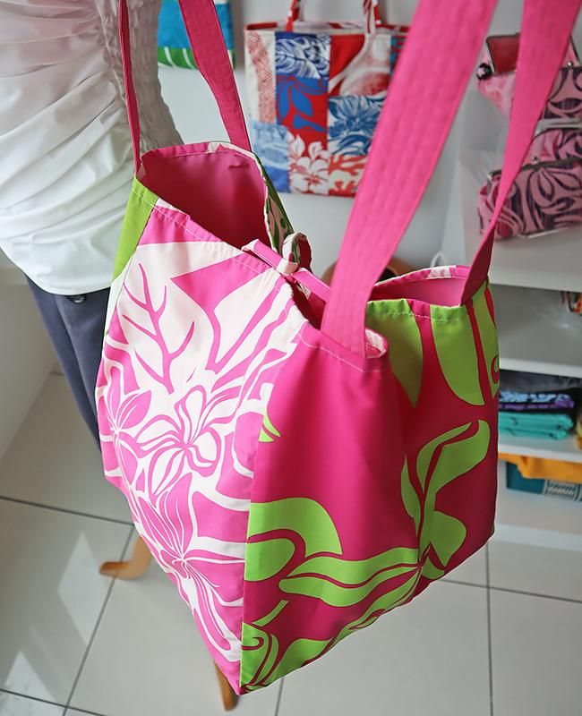 TOP > 〜新商品〜 Pink Lei オリジナル【1点もの】エコトートバッグ ピンク&グリーン&ホワイト・ティアレ&プルメリア柄