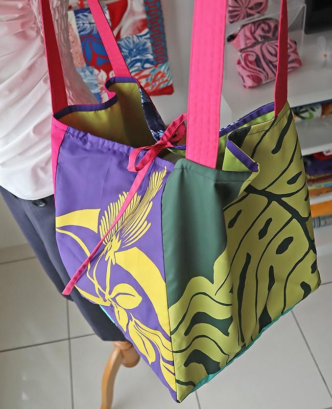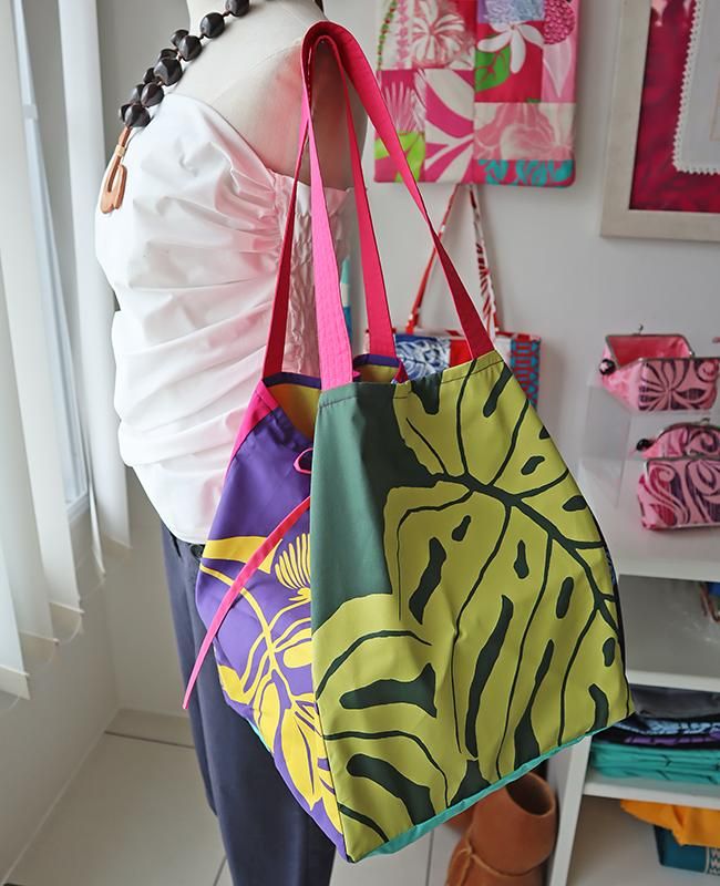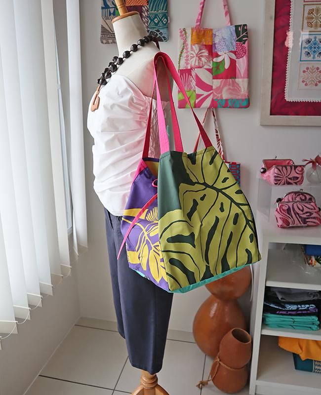 TOP > 〜新商品〜 Pink Lei オリジナル【1点もの】タヒチインポーツ/エコトートバッグ ホットピンク&パープル&ブルー