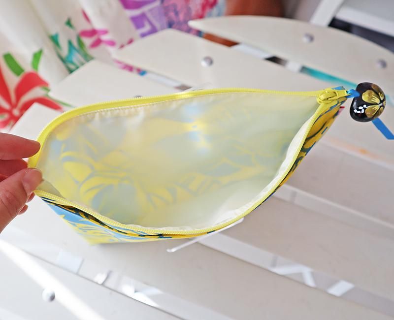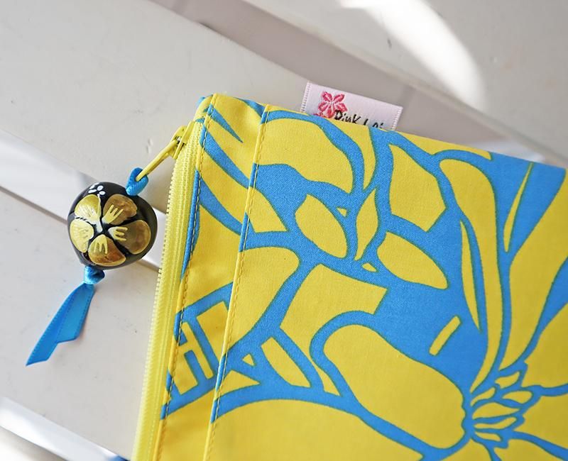 TOP > Pink Lei オリジナル【1点もの】ハワイアンマスクポーチ レモンイエロー&ブルー/ティアレ&レフア柄