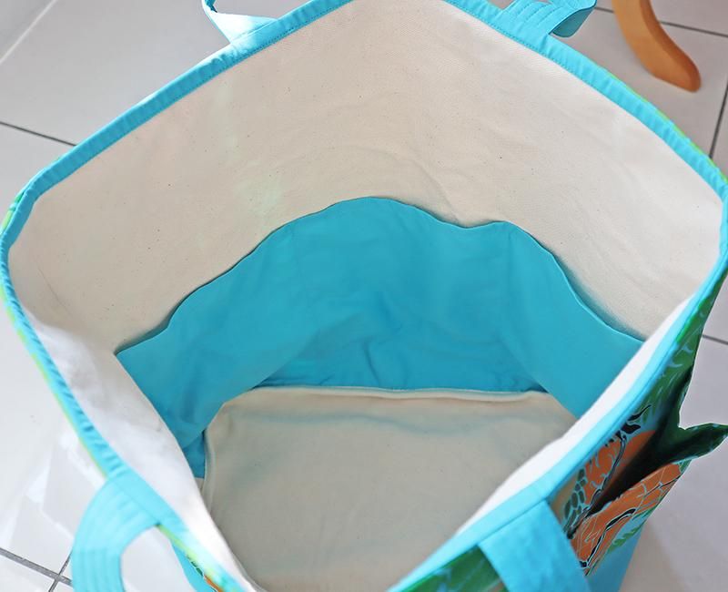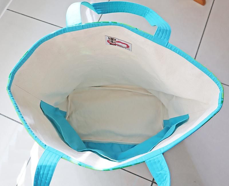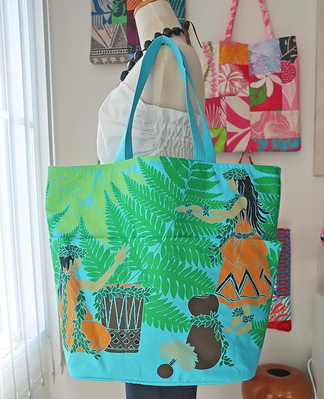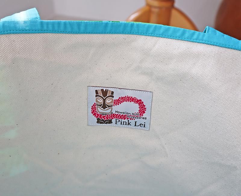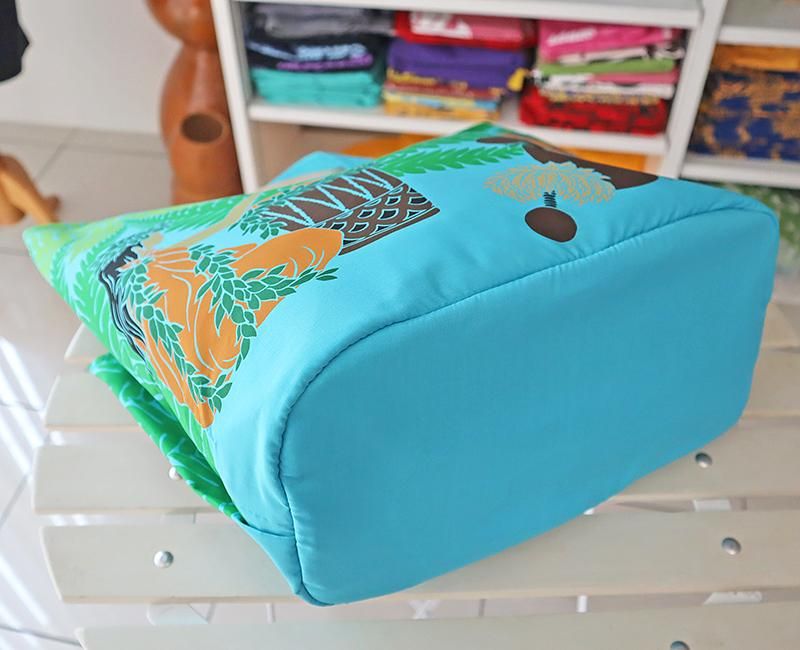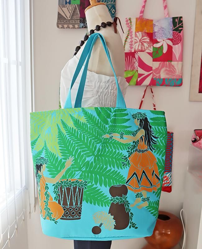 TOP > Pink Lei【1点もの】デイリートートバッグ ターコイズブルー/カヒコフラガール&チャンター柄