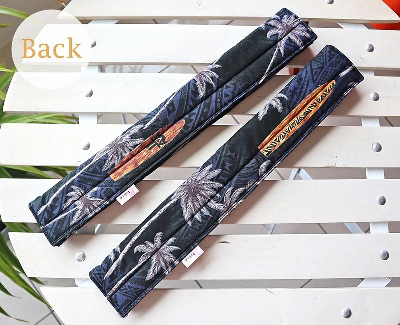 TOP > 〜Pink Lei オリジナル〜 シートベルトカバー ブラック&ネイビー・ヤシの木&タパ柄【1点もの】