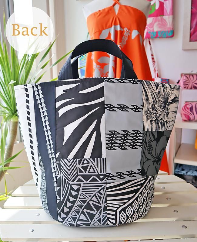 〜新商品〜ハワイアンパッチ・バケツバッグ(L)ブラック&ホワイト【1点もの】